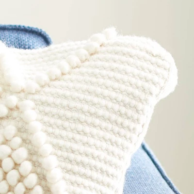 Looped diamond patterns poke up through the texture-rich cover of this Space Dye Pillow. Made using soft handloom wool, colored in a soothing shade of crème, in an irresistible, high-touch pattern ideal for any master suite or living room. Poly filled insert and featuring a hidden zipper sewn into the back for fluffy, easy-care charm year after year.