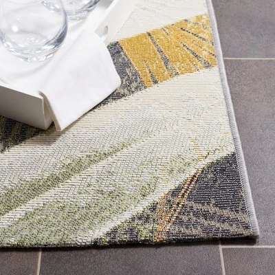 Introducing our captivating runner area rug, designed to bring a touch of elegance and sophistication to your home or outdoor spaces. Measuring 2 feet 8 inches by 8 feet, this runner rug boasts a sleek height of 1/4 inch, making it a subtle yet striking addition to any corridor or living area.Crafted using a state-of-the-art power-loomed technique, this exquisite piece is composed of a durable blend of materials ? 76% Polypropylene and 23% Polyester, with a 1% backing material for additional stability and longevity. The result is a rug that not only looks luxurious but is also built to withstand the test of time.Radiating with the majestic hues of BLACK, GREEN, and GOLD, our runner rug features a mesmerizing pattern that exudes an aura of nature-inspired tranquility. The intricate design showcases a tropical leaf motif, bringing an organic and vibrant energy to your indoor or outdoor settings.Proudly made in Egypt, this rug is imbued with the exceptional craftsmanship and rich artistic heritage synonymous with the region. Moreover, its OEKO-TEX certification ensures that it is free from harmful substances, offering peace of mind and safety for you and your loved ones.Whether placed in a cozy indoor nook or enhancing your outdoor patio, this runner rug transcends the ordinary, inviting a harmonious blend of modernity and classical allure to any space it graces.Upgrade your d?cor with this stunningly designed runner area rug, where