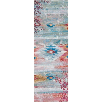 Transform your living space with the enchanting charm of our Light Blue/Pink Runner Rug, a stunning tapestry that weaves together luxury and durability. Delicately crafted in the heart of Egypt, this runner-sized 2′-8″ x 10′-5″ rug brings a touch of exotic sophistication to both indoor and outdoor settings.As you unroll this runner, the playfulness of light blue and pink hues will dance across your floors, gracefully intertwined with a mesmerizing pattern that captures the eye. An artistic blend of geometric, abstract, and organic motifs pays homage to traditional designs while embracing modern aesthetics.Constructed with the utmost craftsmanship, our runner rug features a low pile height of 1/4″ that delivers a combination of comfort underfoot and ease of maintenance. The power-loomed technique ensures precision in every stitch, resulting in a durable rug that’s ready to face the hustle and bustle of everyday life.Composed of a robust blend of 76% Polypropylene and 23% Polyester with 1% backing material, our rug promises resilience against wear and tear, alongside a soft texture that’s a delight to touch. It is specially designed to withstand both indoor and outdoor conditions, making it a versatile addition to any setting.More than just a decorative element, our OEKO-TEX certified rug meets high safety and environmental standards, ensuring it’s free from substances that could harm you and your loved ones. Each strand of this rug speaks to conscientious manufacturing and