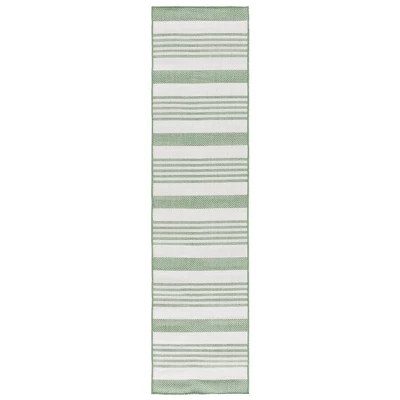 Elevate your indoor or outdoor space with this stylish area rug, expertly crafted in Turkey using a power-loomed technique for impeccable quality and durability. Made from Polypropylene Frize, it offers a comfortable feel underfoot with a low pile height of 1/4 inch, making it an ideal choice for high-traffic areas.The rug features a versatile and modern stripe pattern in soothing green and white tones that blend seamlessly with a variety of decors. Its washable nature ensures easy maintenance, so you can keep it looking fresh and vibrant all year round.Whether you’re looking to add a touch of elegance to your patio, deck, or any room inside your home, this durable and attractive rug is designed to withstand the elements while providing a cozy and inviting feel.