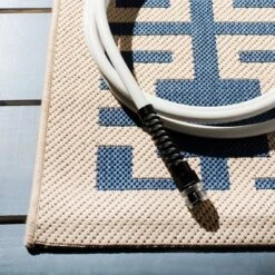 - Indoor-outdoor rugs are made with durable synthetic materials to help them to withstand high traffic and natural weather elements. Outdoor rugs can be cleaned with a bit more vigor, such as rinsing a rug with a garden hose to remove excessive grime. Dry indoor-outdoor rugs over a railing in the sunlight on both sides instead of placing it on a wooden deck or stone patio, which can encourage the growth of moss or mold on a damp rug.