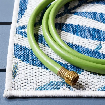 Courtyard indoor outdoor rugs bring interior design style to busy living spaces, inside and out. Courtyard is beautifully styled with patterns from classic to contemporary, all draped in fashionable colors and made in sizes and shapes to fit any area. Courtyard rugs are made with enhanced polypropylene in a special sisal weave that achieves intricate designs that are easy to maintain- simply clean with a garden hose. Care Instructions: Vacuum Without Beater Bar