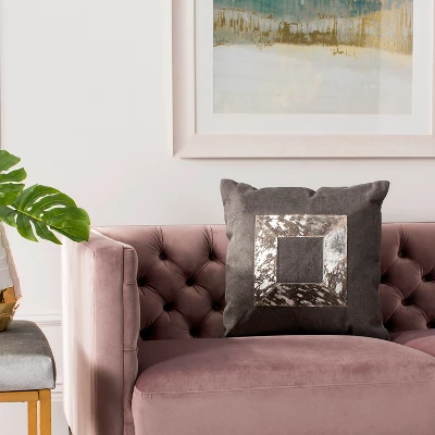 Radiant and glam, the Grayer Metallic Cowhide Pillow is a chic addition to polished home décor. A square motif of metallic smattered cowhide is stitched into suede cover, with subtle tonal variation achieved through a steely color palette. A marvelous accent of elegant energy for the bench or sofa, Grayer displays fashion now trends and high touch texture. Care Instructions: Dry clean only