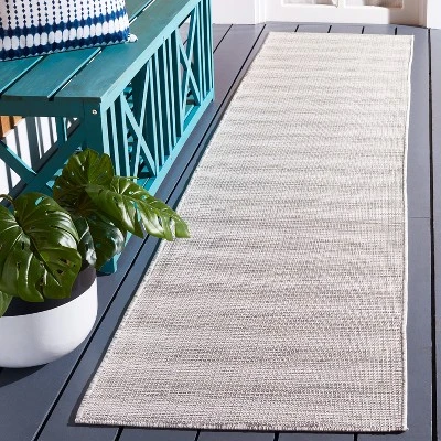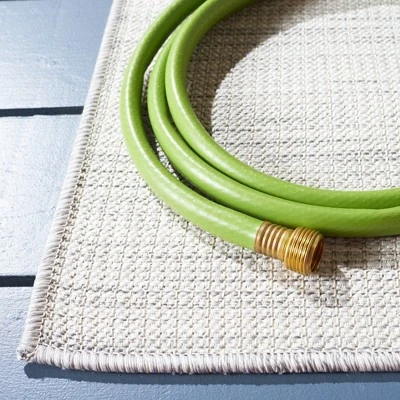 - Indoor-outdoor rugs are made with durable synthetic materials to help them to withstand high traffic and natural weather elements. Outdoor rugs can be cleaned with a bit more vigor, such as rinsing a rug with a garden hose to remove excessive grime. Dry indoor-outdoor rugs over a railing in the sunlight on both sides instead of placing it on a wooden deck or stone patio, which can encourage the growth of moss or mold on a damp rug.
