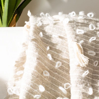 No need to catch a plane, the Safavieh Popper Throw creates a timeless romance story with a simple toss. Dreamy hues of blue make its neutral canvas come alive, while the styles of ancient global artisans inspired the design of its captivating well loved acrylic texture and fringe. Its fascinating mélange of sculpted artistic details makes it a contemporary heirloom. Care Instructions: Dry clean only