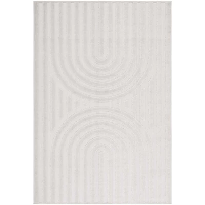Elevate your living space with our exquisite indoor/outdoor area rug, sized generously at 9 feet 2 inches by 12 feet to create a luxurious foundation for any large room, patio, or outdoor area. Embracing the timeless elegance of ivory, this rug exhibits a sophisticated geometric pattern that intertwines harmonious curves and clean lines to bring a modern and stylish touch to your decor.Crafted with precision using a Power Loomed technique, this rug boasts a robust polypropylene pile construction which ensures durability and easy maintenance, making it perfect for high-traffic areas and active households. With a comfortable pile height of half an inch, it provides a plush underfoot while maintaining a sleek profile.Proudly made in Turkey, a country renowned for its rich history in rug-making, our area rug effortlessly combines traditional craftsmanship with modern design. Whether placed indoors or gracing your outdoor setting, this versatile rug promises to enhance the ambiance and withstand the elements, delivering both beauty and functionality to your home.Invite simplicity and elegance into your space with this beautiful ivory area rug, designed to complement a wide range of aesthetics and create a serene atmosphere in any environment.