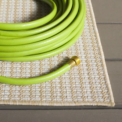 - Indoor-outdoor rugs are made with durable synthetic materials to help them to withstand high traffic and natural weather elements. Outdoor rugs can be cleaned with a bit more vigor, such as rinsing a rug with a garden hose to remove excessive grime. Dry indoor-outdoor rugs over a railing in the sunlight on both sides instead of placing it on a wooden deck or stone patio, which can encourage the growth of moss or mold on a damp rug.