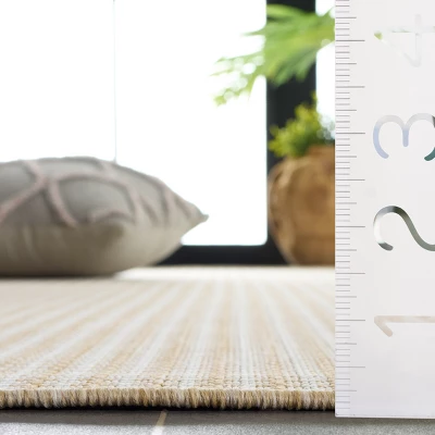 The tasteful beige and ivory color palette exudes a serene and inviting atmosphere, blending effortlessly with your existing decor. Made from high-quality polypropylene, this rug is not only durable but also easy to clean, ensuring it remains a timeless feature in your home for years to come.